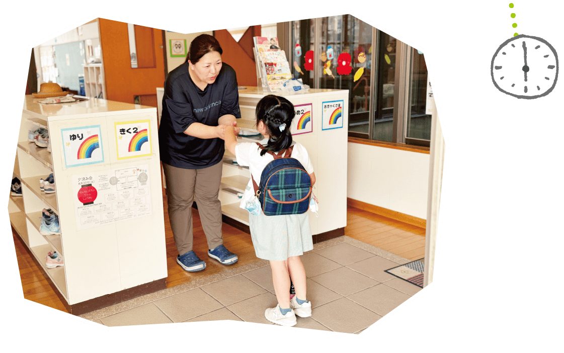 第1・3・5土曜日は各自送迎の預かり保育(午前8時30分より午後1時まで)行事のあるときは中止となります